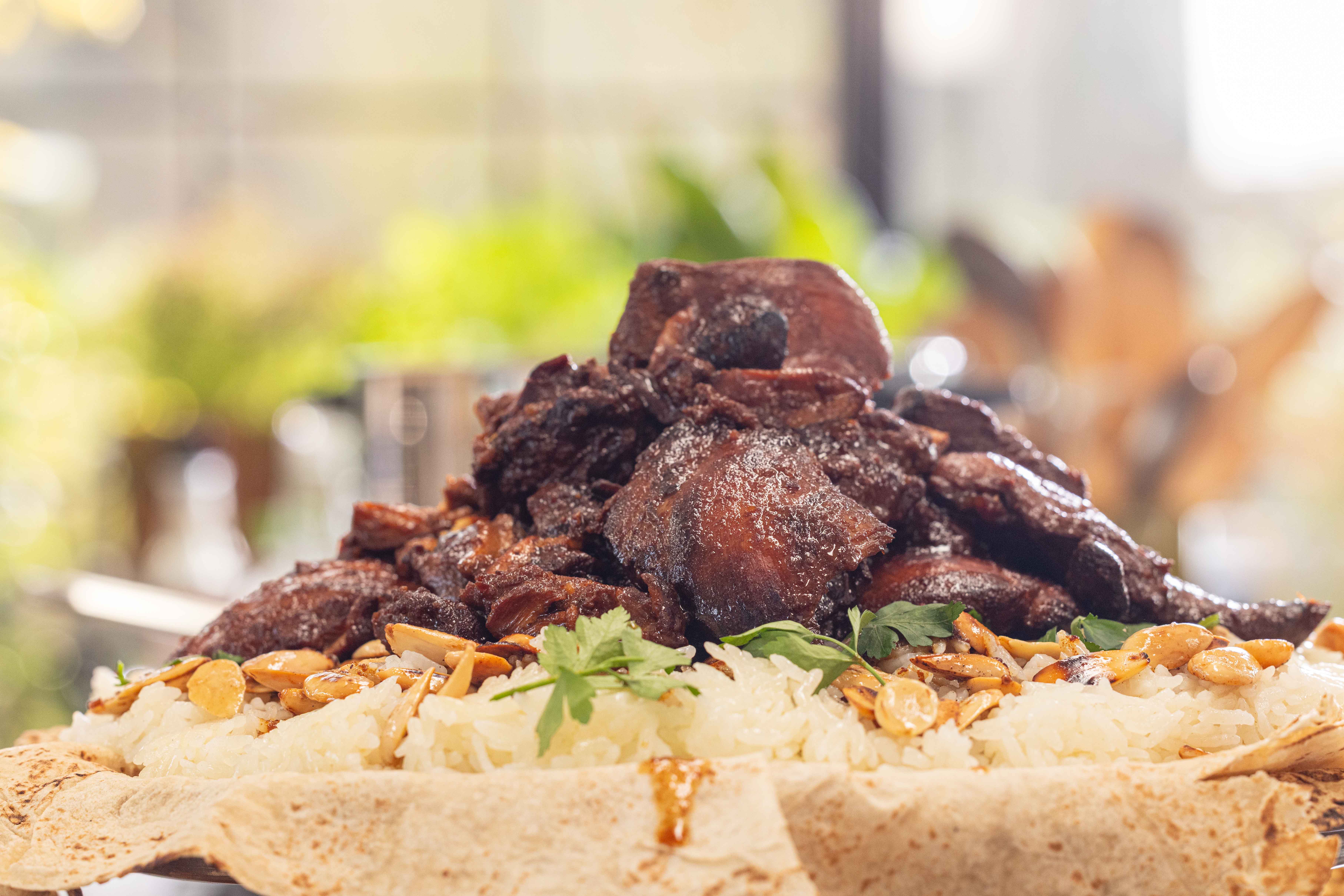 • Geniş bir tabağın tabanına 3 tane lavaşı serin. Lavaşlı tabağı pilavın üzerine kapak gibi kapatın ve ardından pilav tenceresini ters çevirin. Pilavın üzerine bademli tereyağını ve tavuğun lezzetli suyundan gezdirin. 2-3 dal maydanoz yaprağı ve lokum gibi pişmiş tavukları da yerleştirince emrinize amade. Kalan suyunu bir kasede sofraya getirip tabaklara servis ederken tavukların üzerine biraz daha gezdirmenizi şiddetle tavsiye ederim.