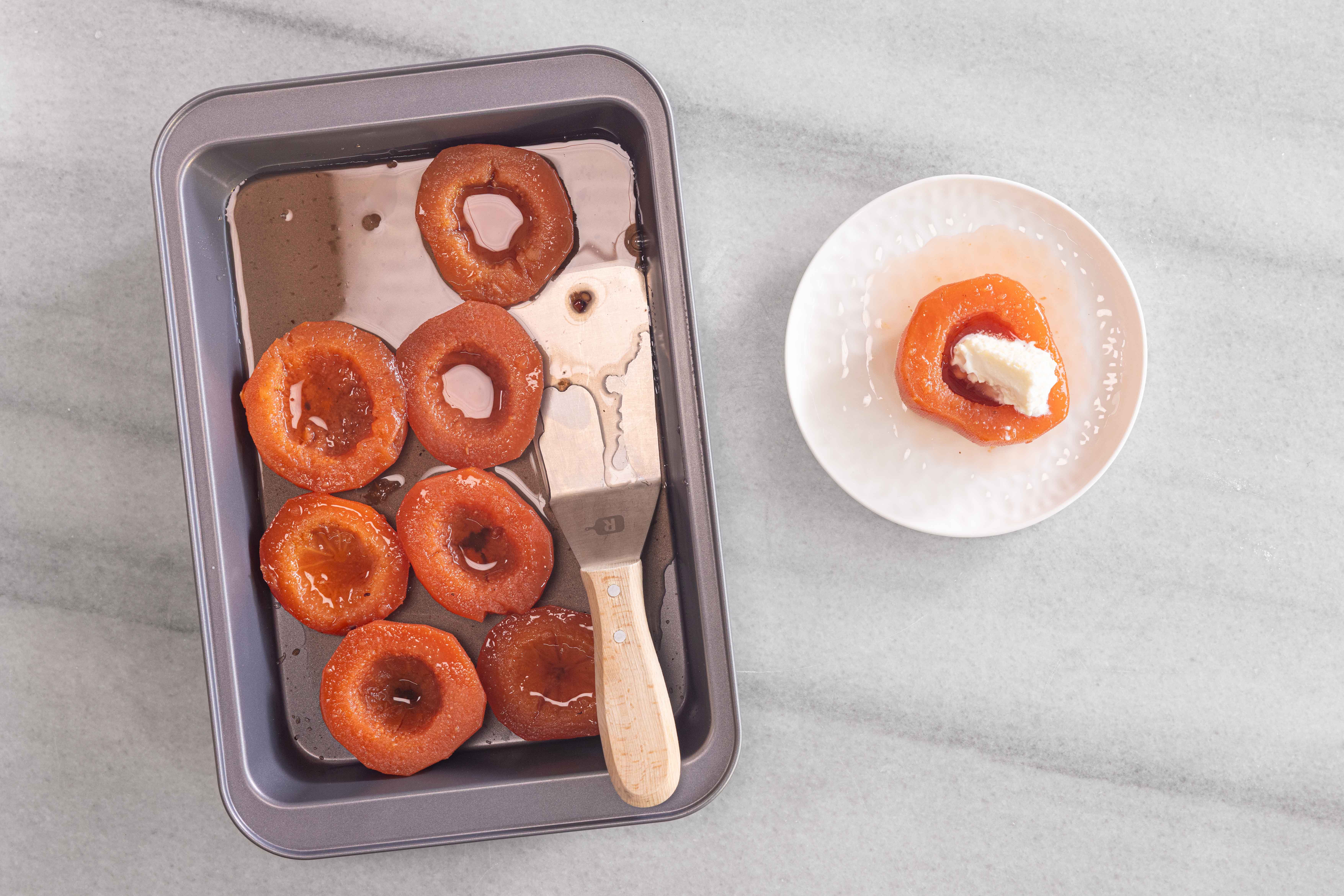 • Ortadaki çekirdekli kısmı ince uçlu bir kaşığın ucuyla sıyırın. Kabukları ve çekirdekleri sakın atmayın. Ayvaya gerçek ve güzel kırmızı rengini bunlar verecek.