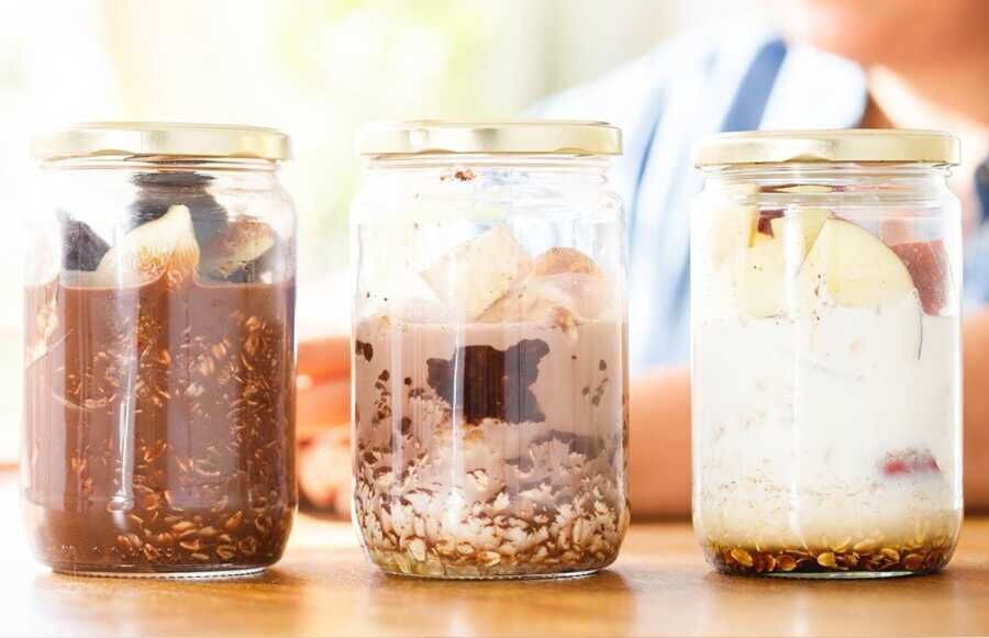 • Yulaflı kavanoz için, kavanoza 3-4 çorba kaşığı yulaf ezmesi ve 4-5 çorba kaşığı yoğurt koyup karıştırın. Kapağını kapatıp 1 gece buzdolabında bekletin. Bekleyince yulaf açılacak ve karışım kaymak gibi bir hal alacak.
