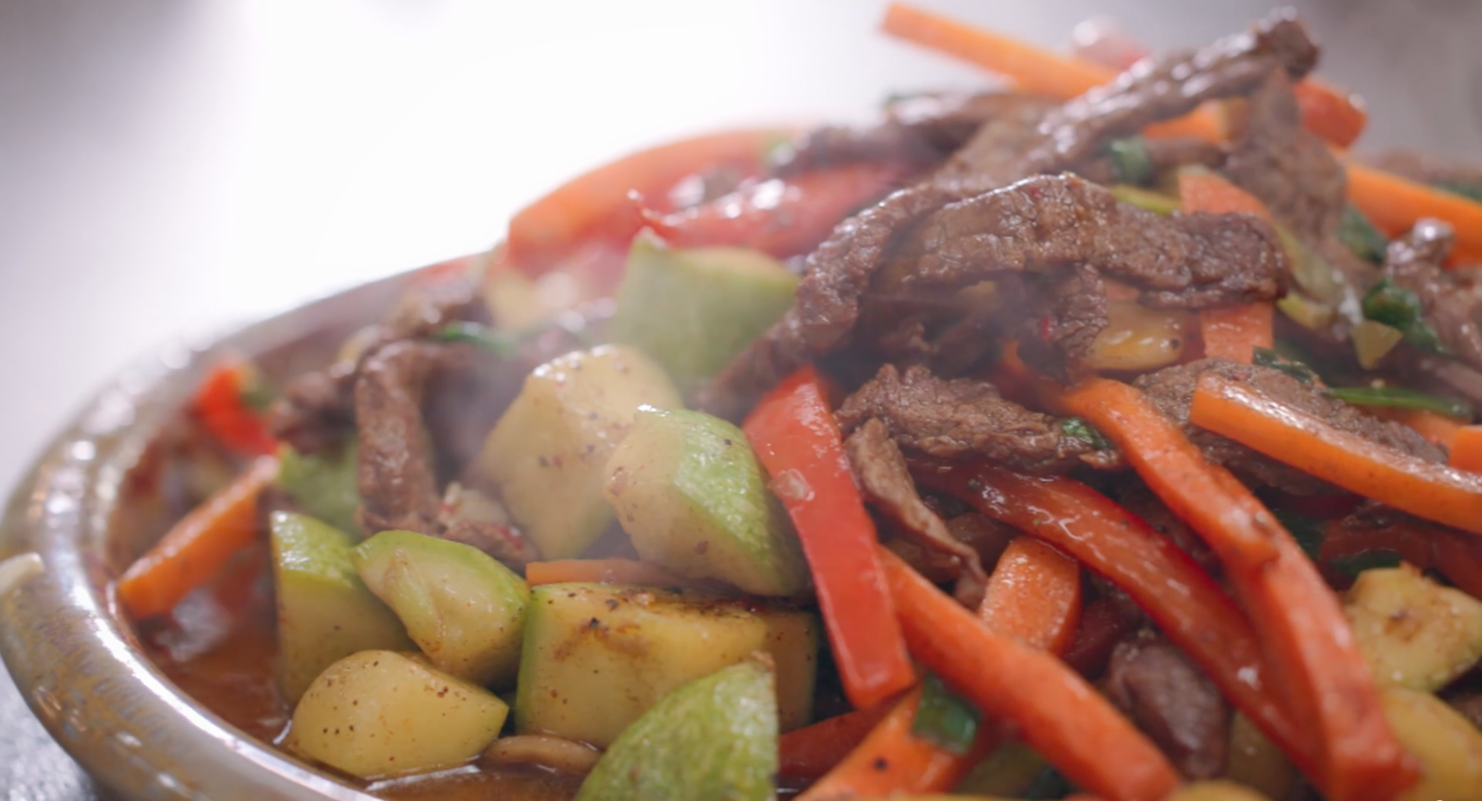 • Sebzeli kavanozu alın ve ilk yer fıstıklarını tavaya ekleyip 30 saniye kadar karıştırarak kavurun. Havuçları ekleyin ve 1-2 dakika da onları kavurun. Kabakları ekleyip 1-2 dakika kavurmaya devam edin. Kabaklar da renk alınca kapya biberleri ilave edin. Sebzelerin üzerine 1 tutam tuz ekleyin. Son dakika tavaya taze soğanları, 2 dal maydanozu ve 1 tutam karabiberi ekleyin. Tavayı sallayarak veya karıştırarak tüm lezzetin birbirine girmesini sağlayın.