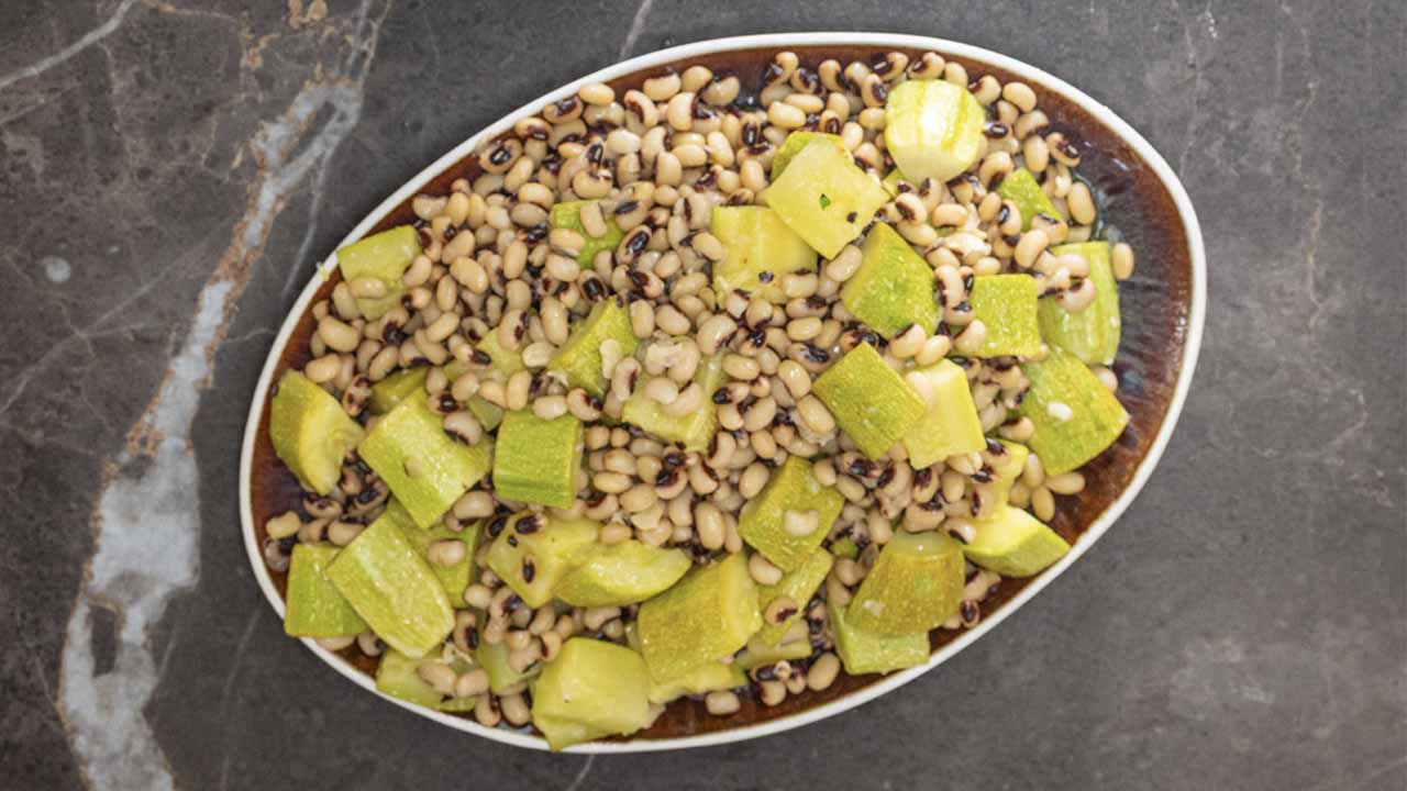 • Pişen kabak ve börülceleri karıştırıp tabağa alın. Üzerine sosunu gezdirince afiyetle yemeniz için hazır.