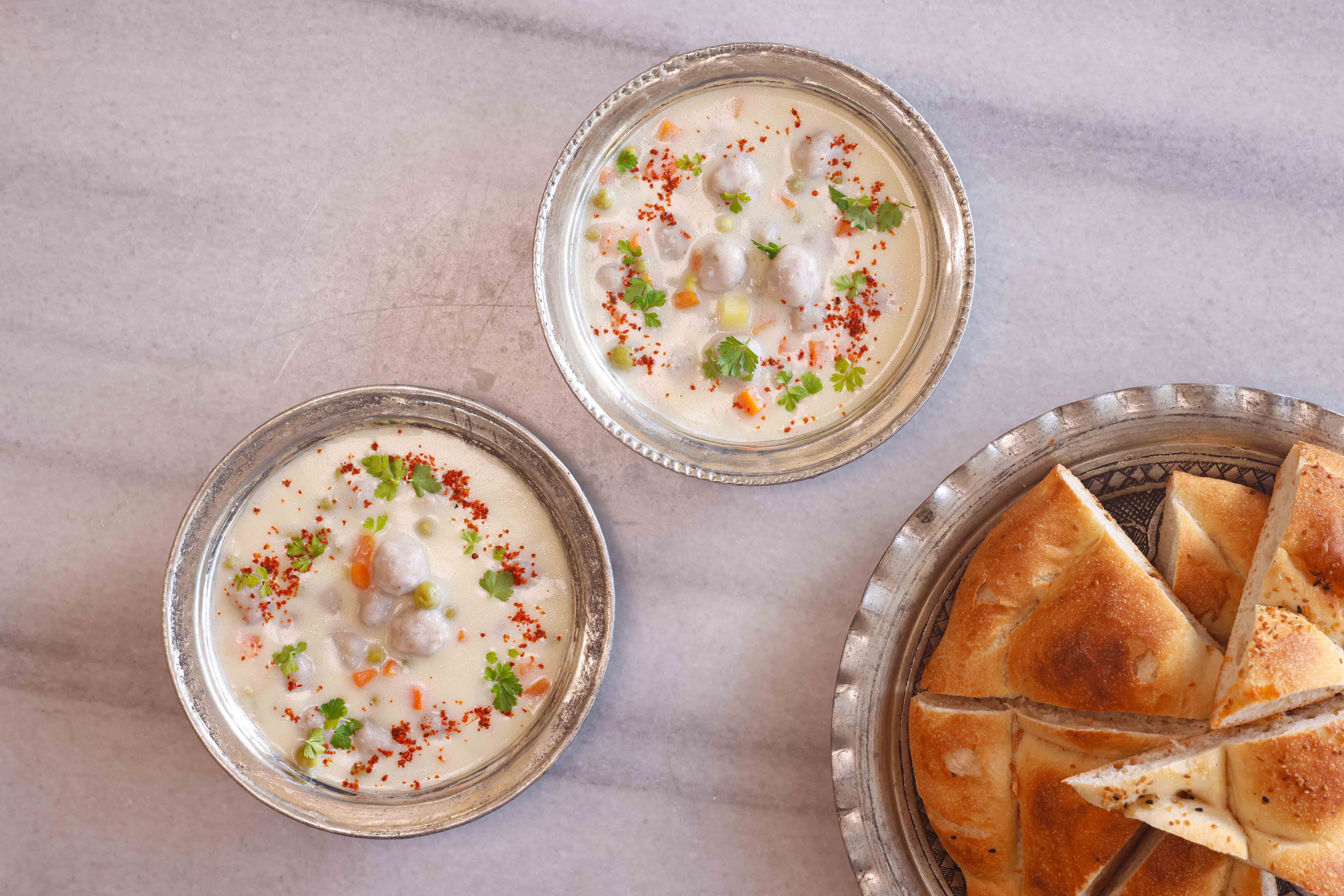 • Köfteler 3-4 dakika pişip üste çıkmaya başladığında, çorbanın suyundan 1-2 kepçe alıp terbiyeye ekleyin ve karıştırın. Böylece yumurta ve yoğurt birden sıcağa girip kesilmeyecek.
