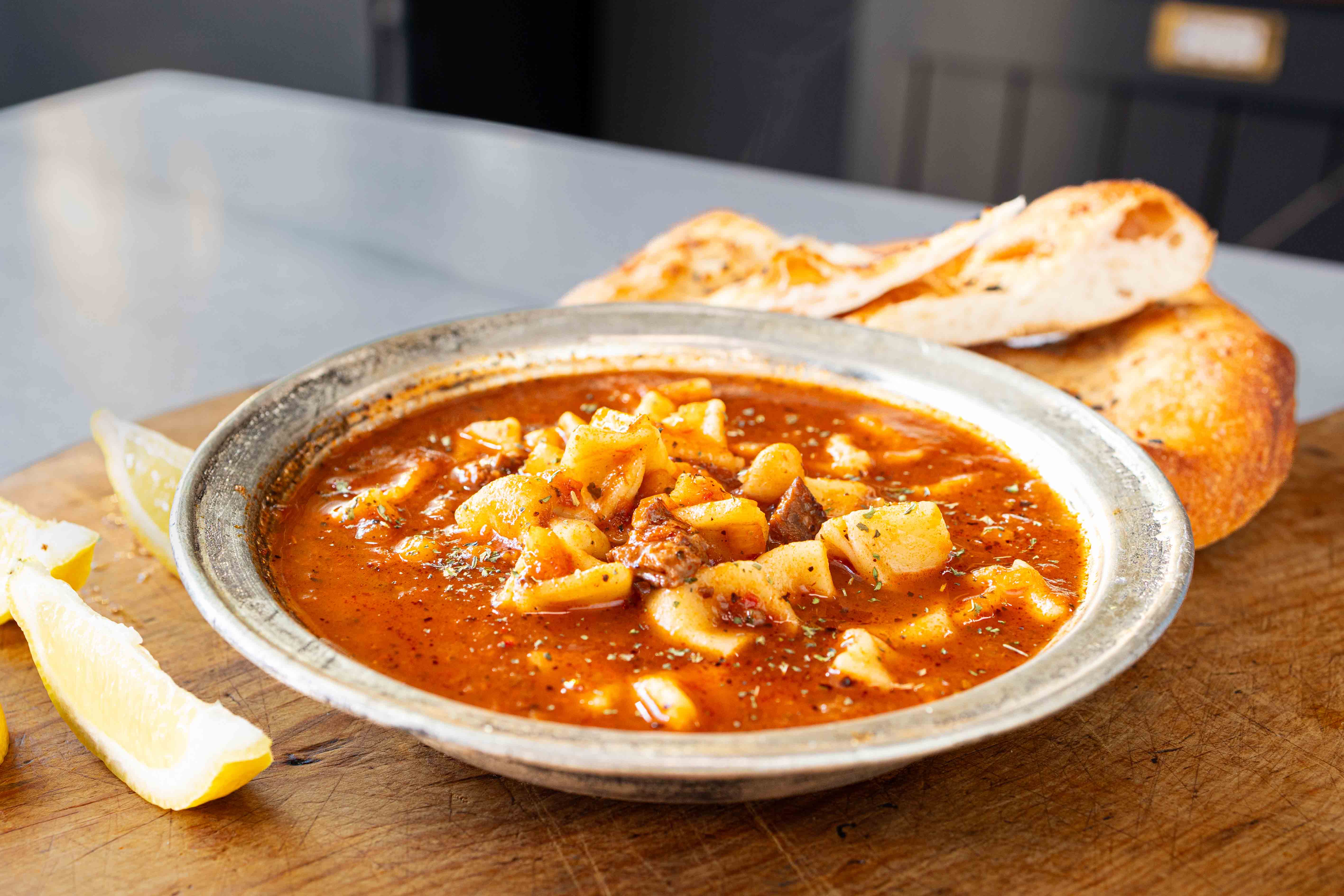 • Kaynayan çorbanın içine 200 g haşlanmış nohut ve 275 g dondurulmuş mantı ekleyin. Mantılar pişene kadar yaklaşık 10 dakika daha pişirin. Ardından sıcak sıcak servis edebilirsiniz. İçmeden hemen önce üzerine mutlaka limon sıkın. Her kaşığında eti, nohudu ve mantısıyla yiyenleri memnun edecek yüksük aşı emirinize amade!